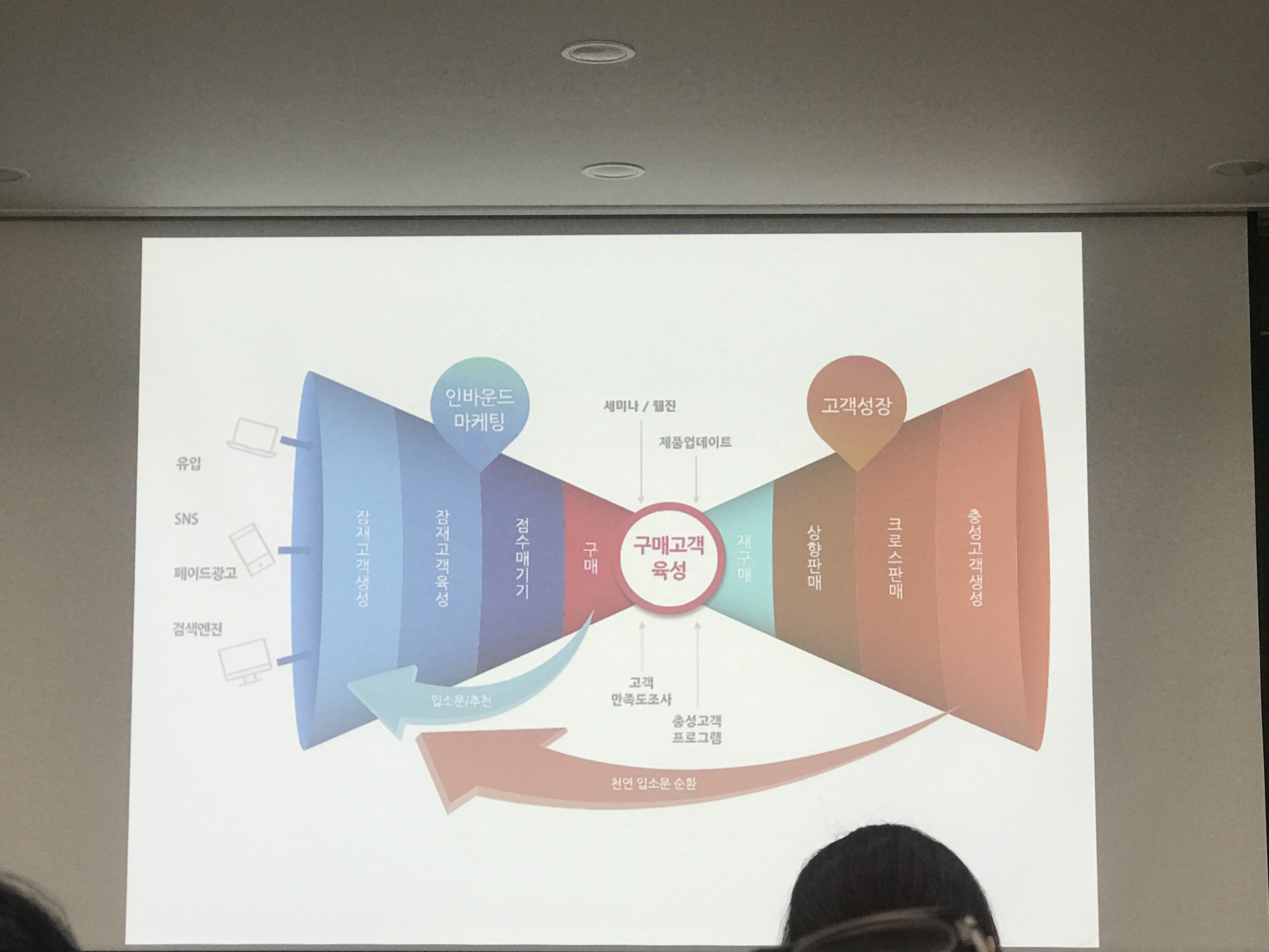 1교시는 이명신대표(본부장?)님이 리드생성, 리드 육성, 마케팅자동화 등거시적이고  개념적인 설명과 랜딩페이지 사례가 호기심을 자극했다.
